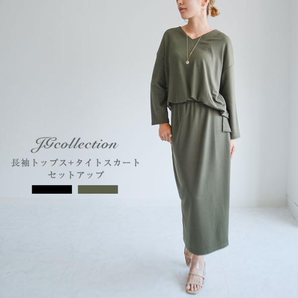 セットアップ レディース ロングスカート 長袖 カットソー 春 夏 きれいめ カジュアル ブラック ベージュ カーキ ブラウン 黒 茶 Jgコレクション Jg Xop146 Jungle Jungle 通販 Yahoo ショッピング